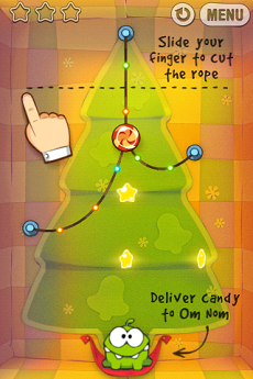 Геймплей игры до удивления прост: мы, по старинке, должны накормить милого монстра Ам Няма , который обожает леденцы. Как и в прошлых версиях, наша задача - резать веревки таким образом, чтобы висящие на них конфеты падали нашему персонажу прямо в рот. Механика осталась прежней, даже все приспособления, которые были внедрены в последних версия, есть и здесь. Разработчики решили лишь украсить новые 25 уровней предметами новогодней тематики - игрушками, носками, шапочками Санта Клауса, шариками, и другими приятными мелочами.